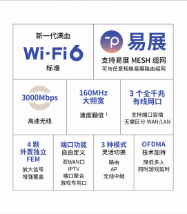 千兆端口家用高速穿墙王 wifi6全千兆无线路由器 5G大户型双宽带iptv口3050 LINK路由器AX3000 普联TP