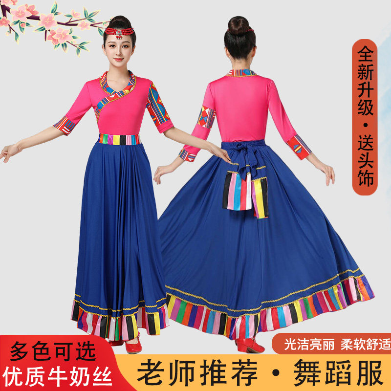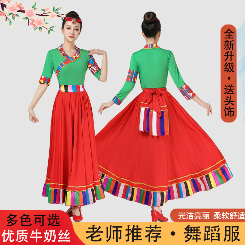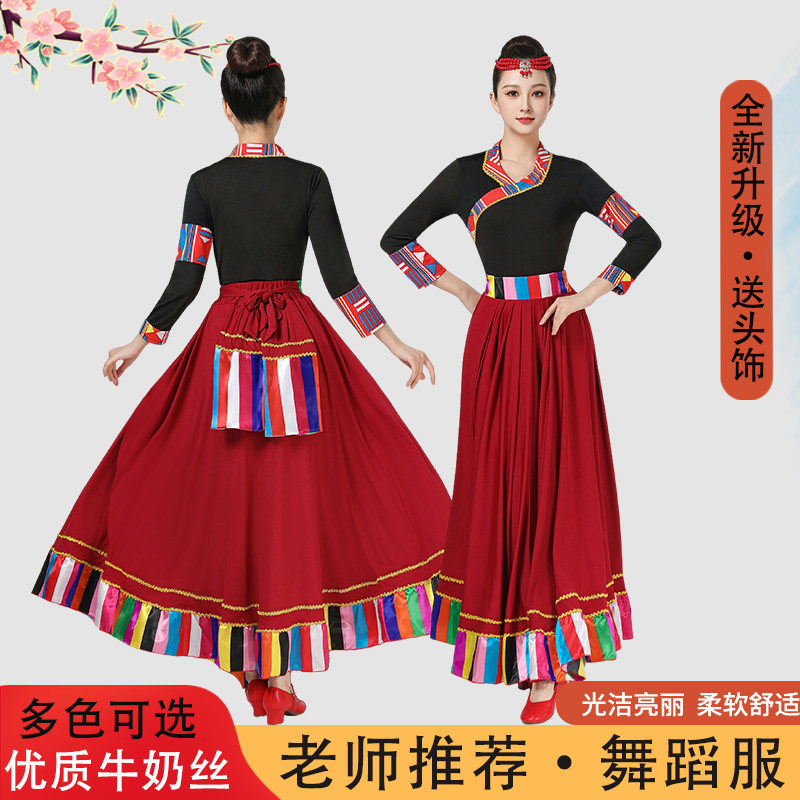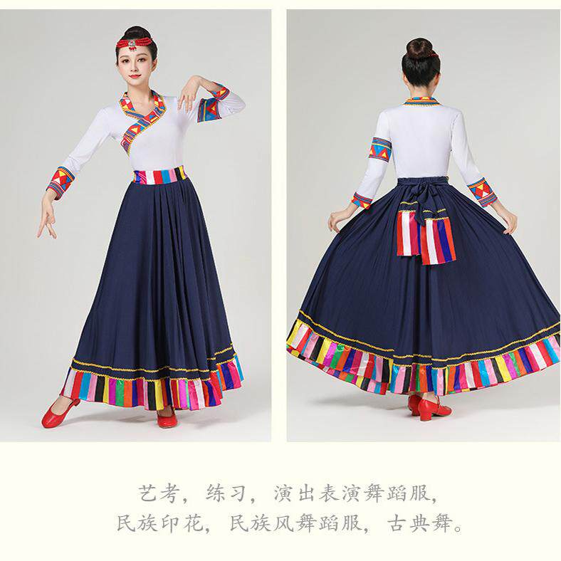 藏族舞蹈演出服装 女大摆练习半身裙少数民族风艺考表演广场舞套装