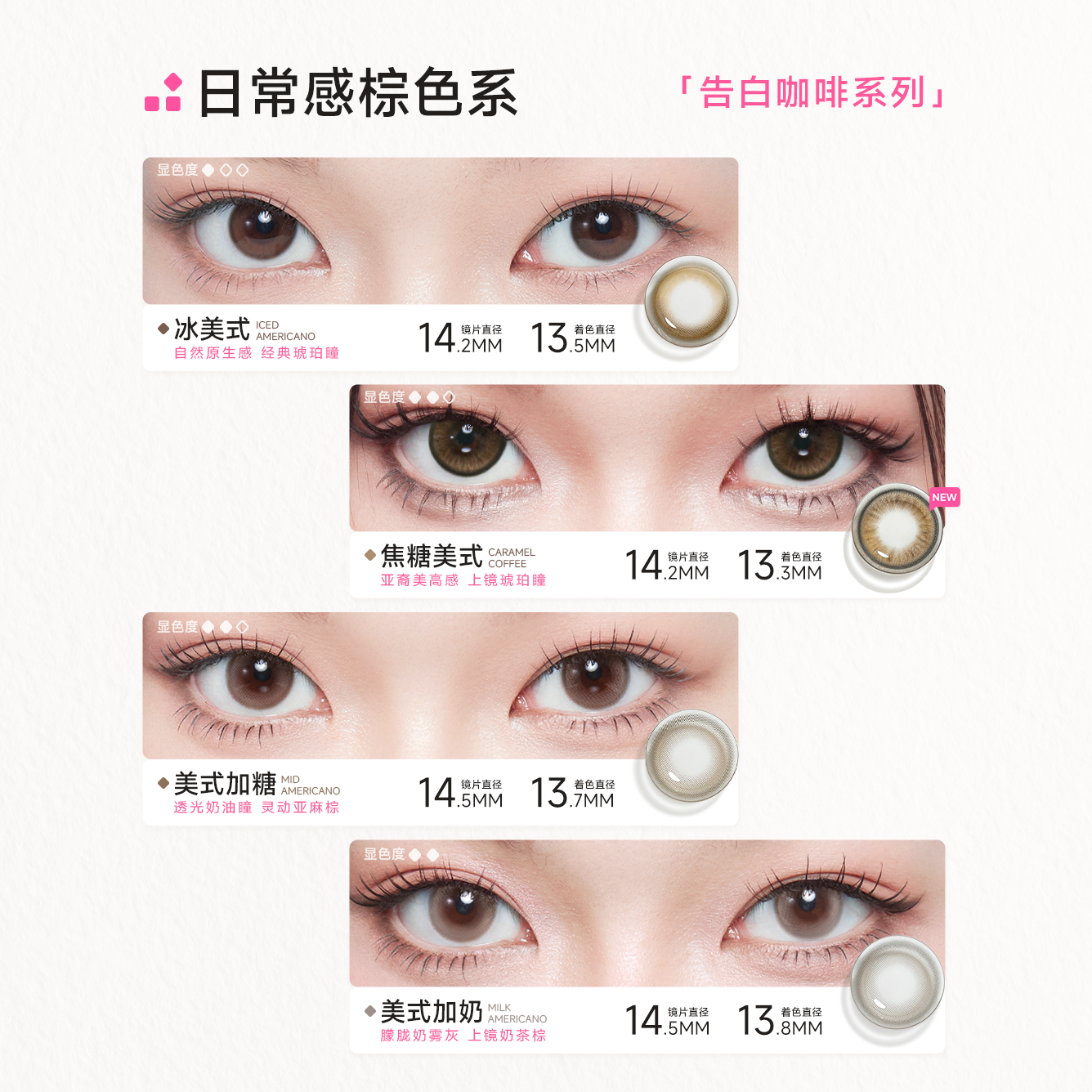 3盒咖啡系列冰美式 UP日抛2片 焦糖美瞳彩色隐形眼镜 GLAM 尝鲜装