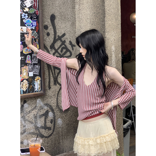 带胸垫2024新款 吊带小背心美式 女生冰丝内搭美背上衣 辣妹短款 法式