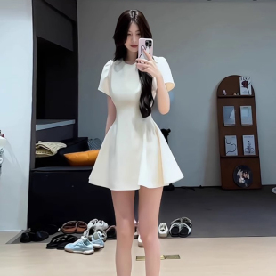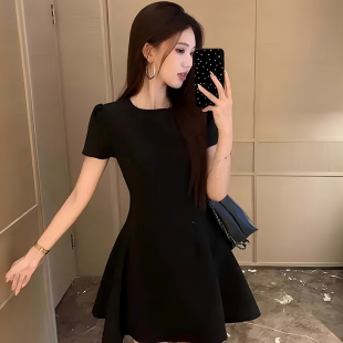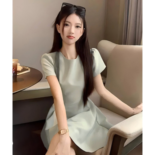 有内衬绿色短袖 气质小个子高级感收腰短裙D1263 连衣裙2026夏法式
