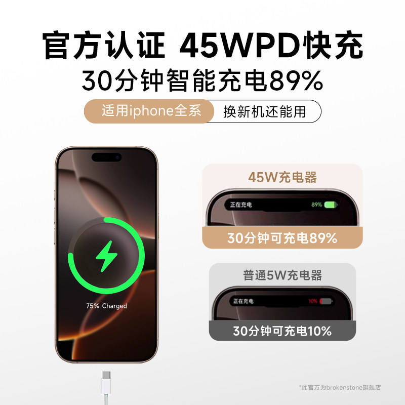 16promax数据线iphone14手机13plus插头12 PD30快充充电器适用苹果15 xr原一套装 快 ipad官正品 3C认证