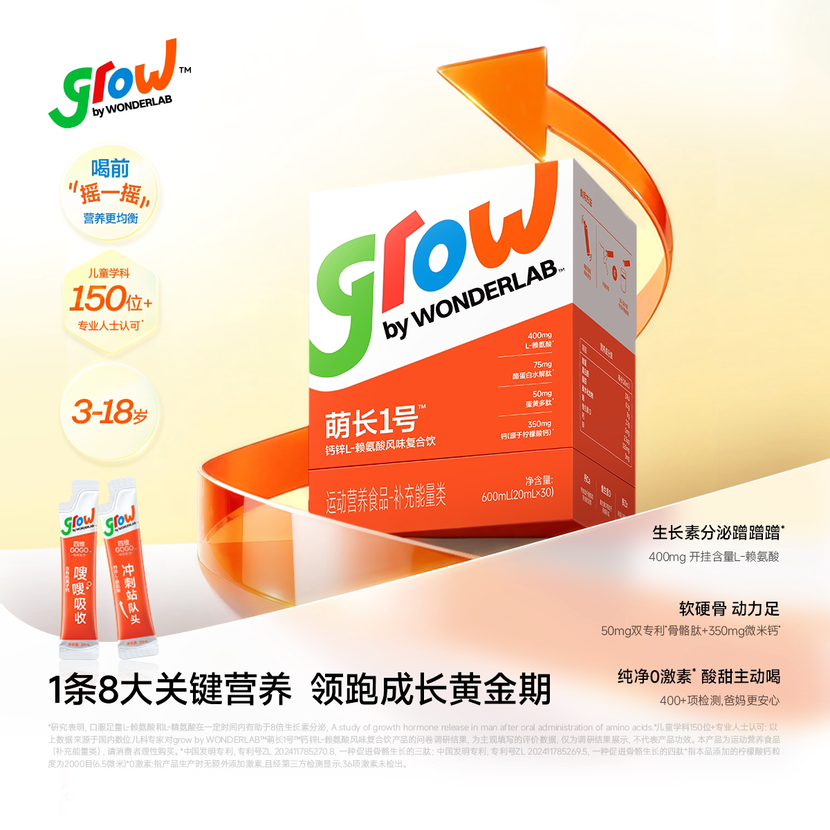 万益蓝grow儿童液体钙口服液青少年成长萌长1号赖氨酸生长素