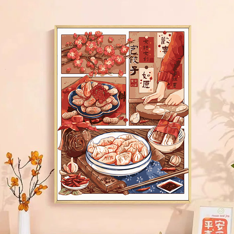 新年春节中国风数字油画diy填充填色手工绘2025新款 饰画 丙烯画装
