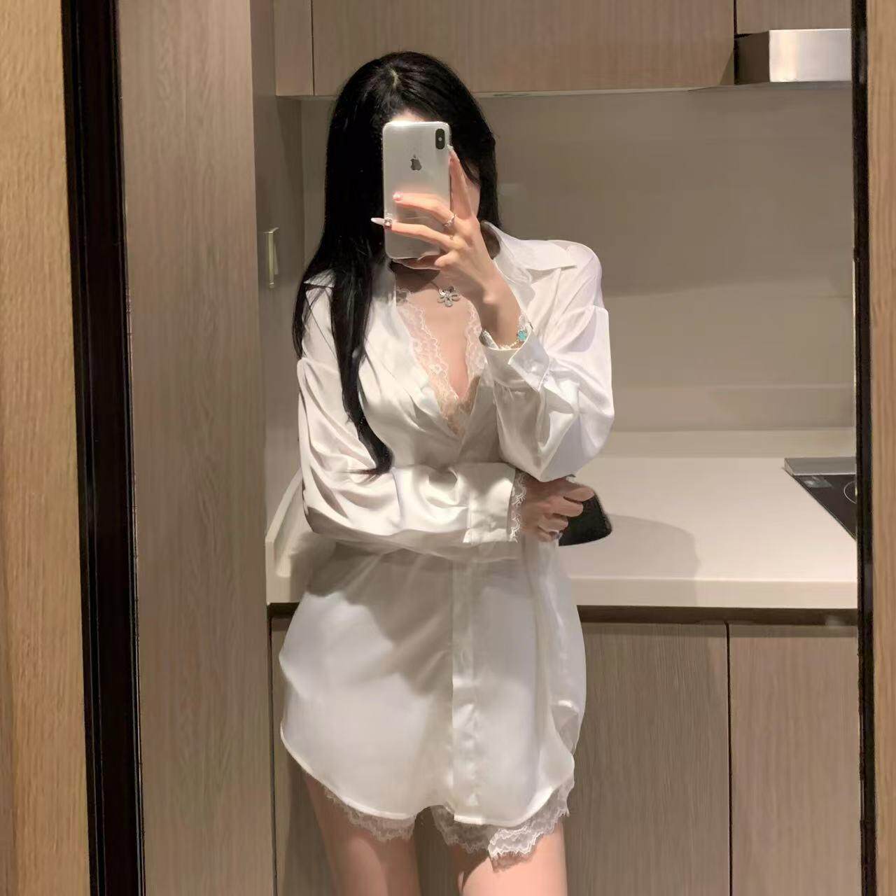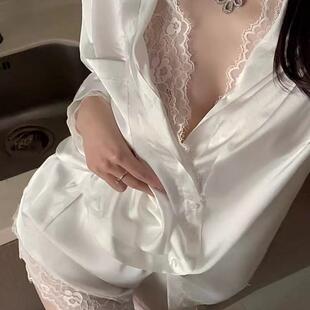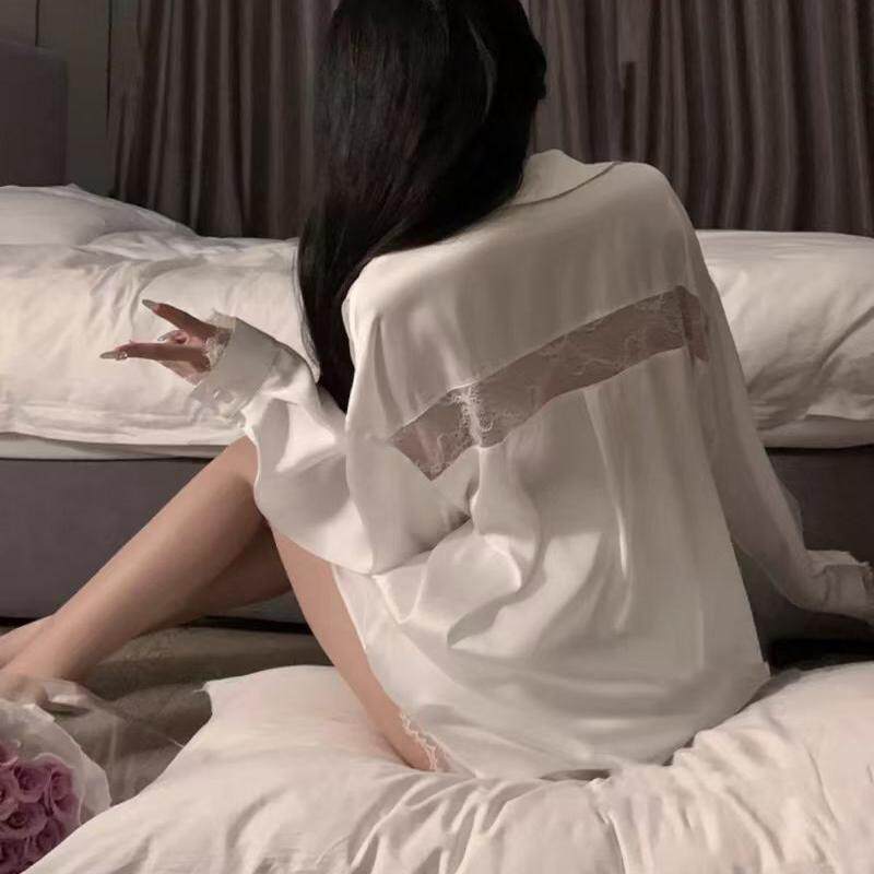 高级感睡衣家居套装 隐衫 宽松白衬衫 男友风性感蕾丝纯欲长袖 之欲