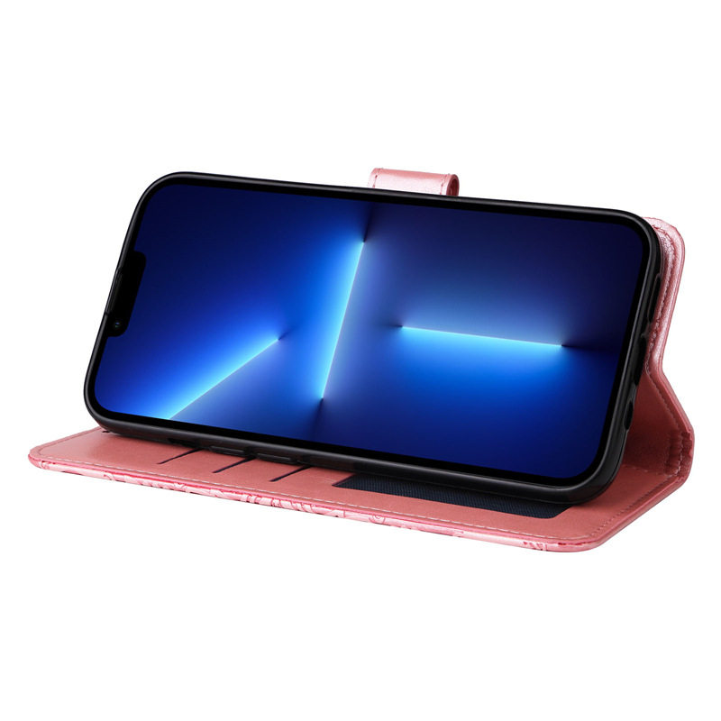 适用苹果16翻盖手机壳iphone case 15promax插卡皮革保护套17掀开折叠支架14Plus花朵女士13红玫瑰金蓝色Filp