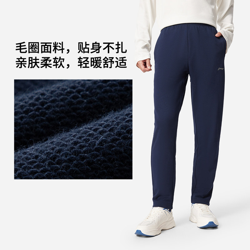 直筒裤 宽松裤 子长裤 李宁运动裤 黑色加绒卫裤 秋冬新款 休闲裤 男 男士