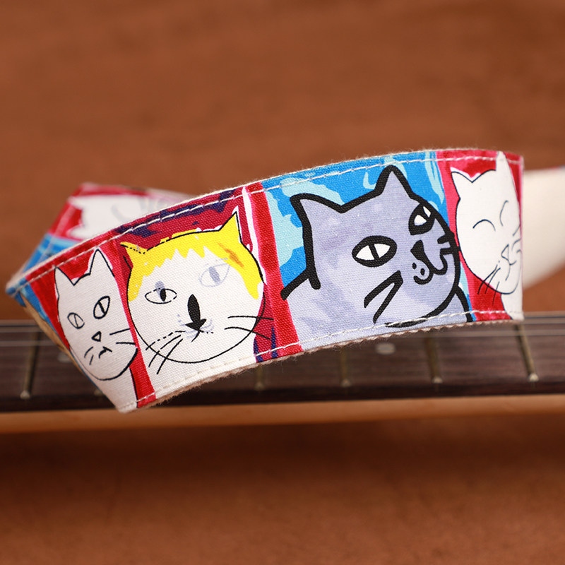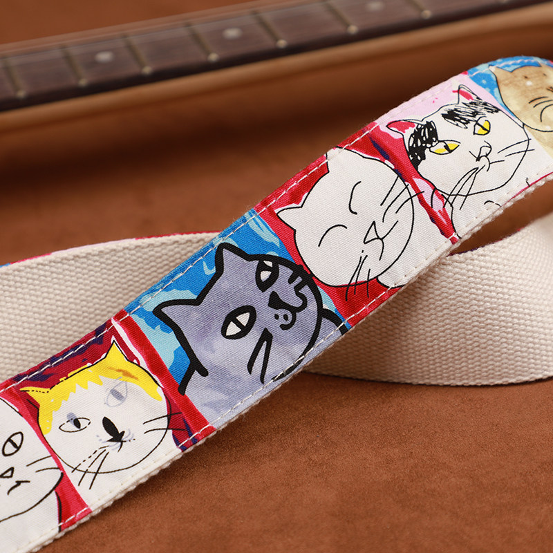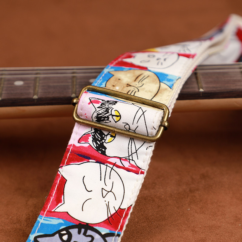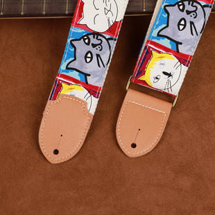 卡通猫咪电吉他背带电贝斯肩带民谣吉他带个性 印花斜跨吉他带加宽