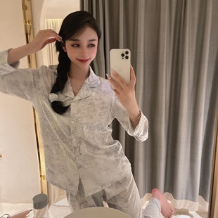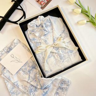 家居服套装 桑蚕丝情侣睡衣春夏秋季 长裤 真丝高级感长袖 可外穿 女款
