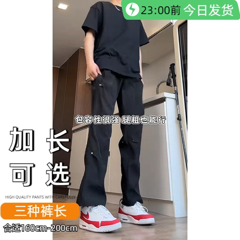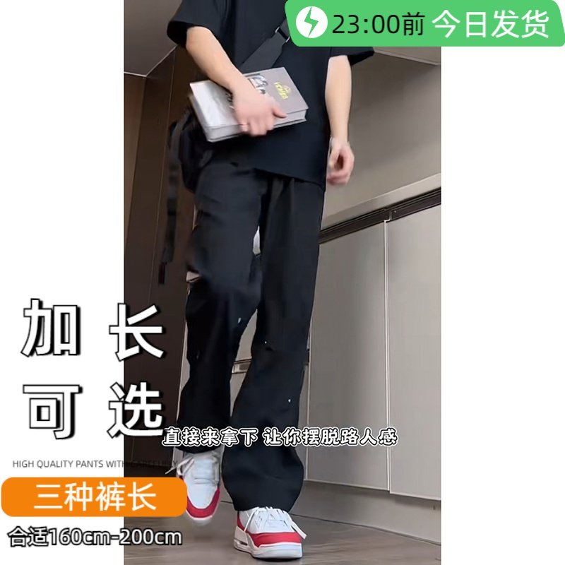 男秋季 裤 2025垂坠感高级感加长版 宽松百搭工装 高个子直筒裤 冲锋裤