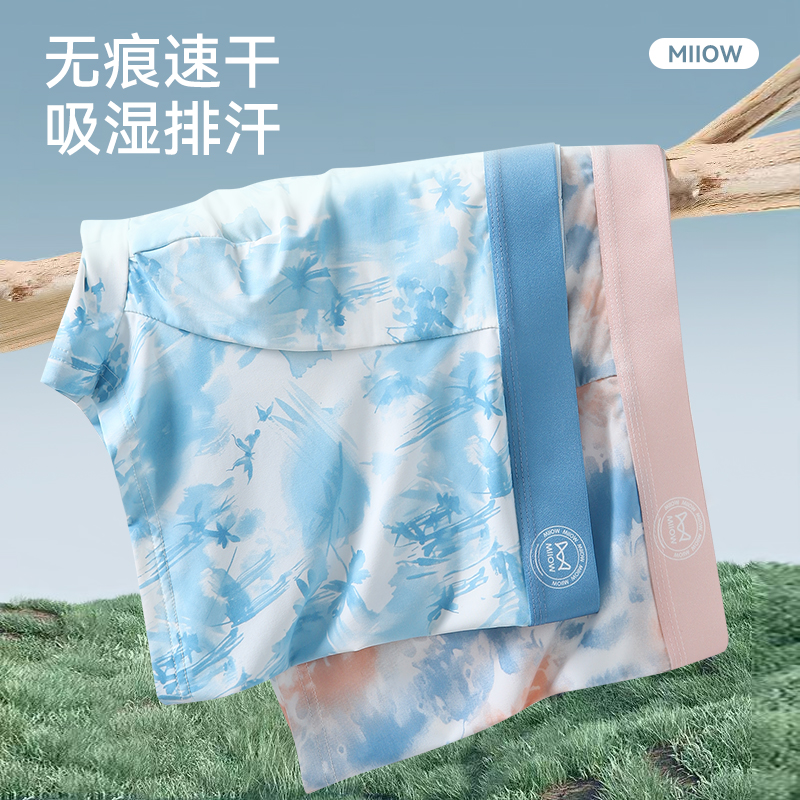 薄款 夏季 透气无痕男生印花2025新款 冰丝平角短裤 猫人男士 男款 内裤