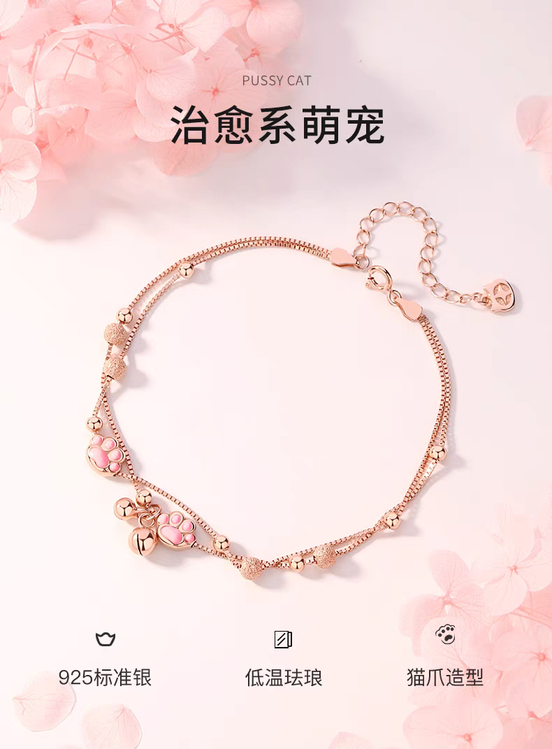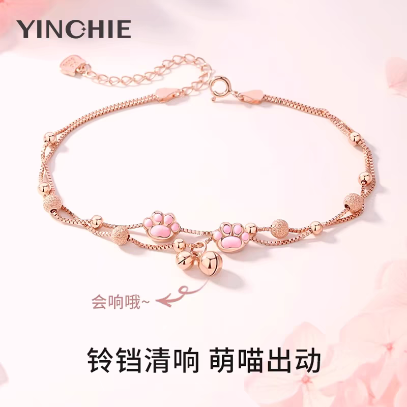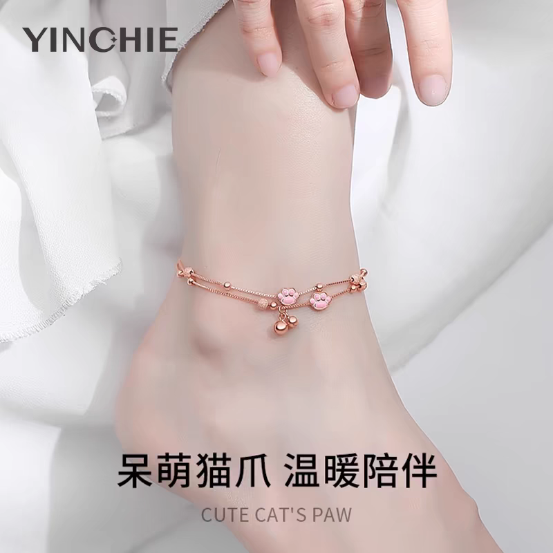 纯银猫爪铃铛脚链女2025新款 潮腿链足环宫铃腿链性感脚裸链送女友