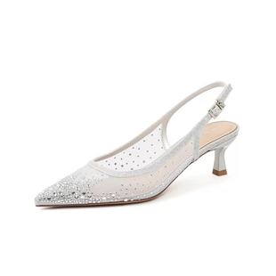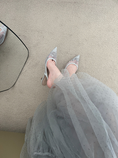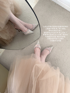女细跟包头凉鞋 lady c气质网纱水钻尖头高跟鞋 璀璨星河j ww美女款