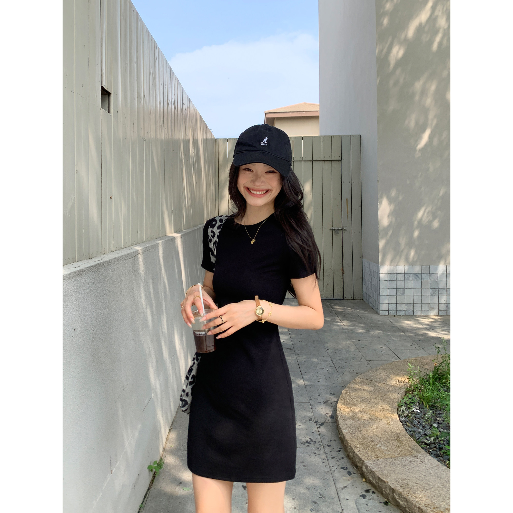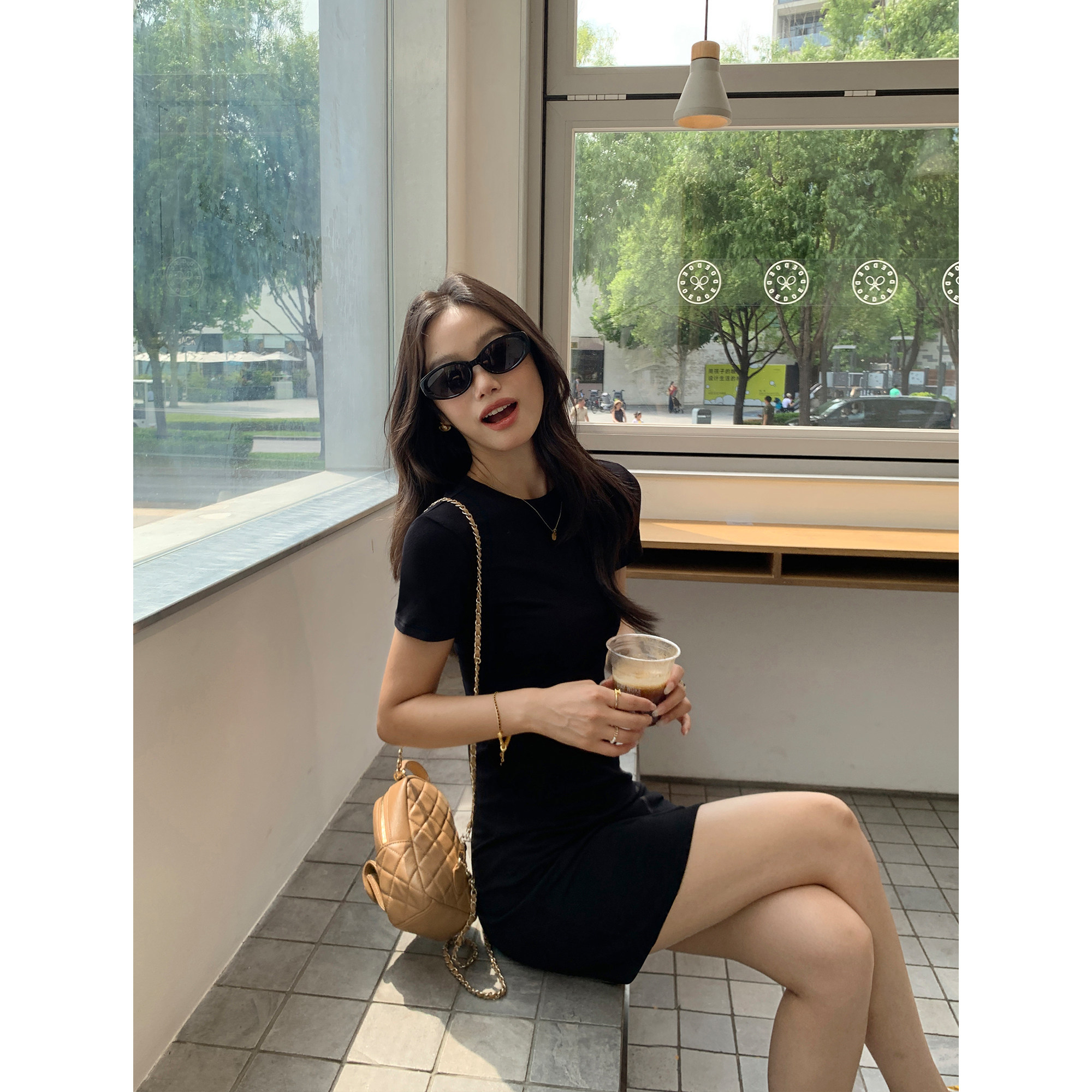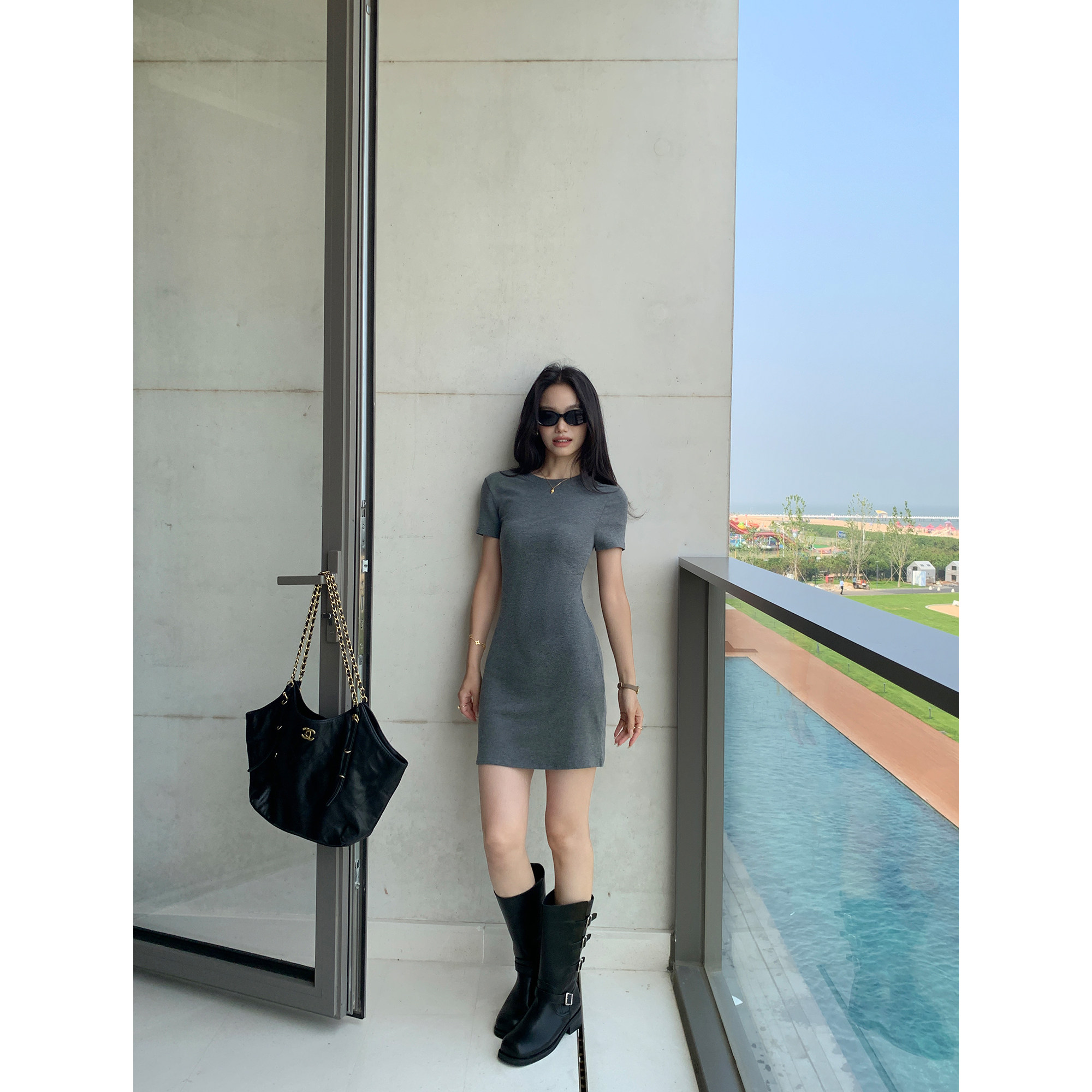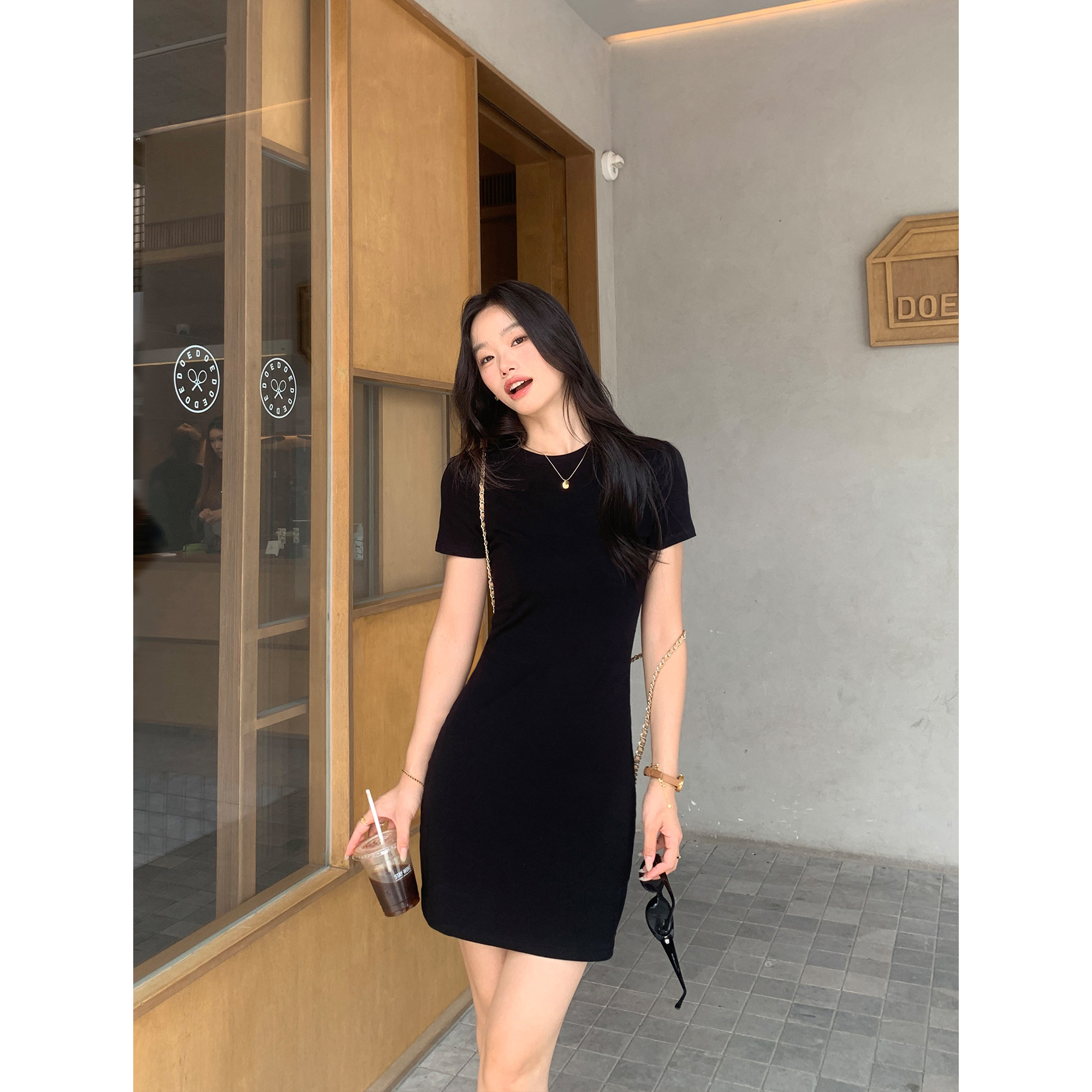 a字包臀短裙 针织连衣裙女气质修身 pusumede出街懒人 简约圆领短袖