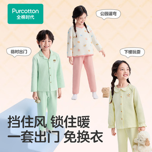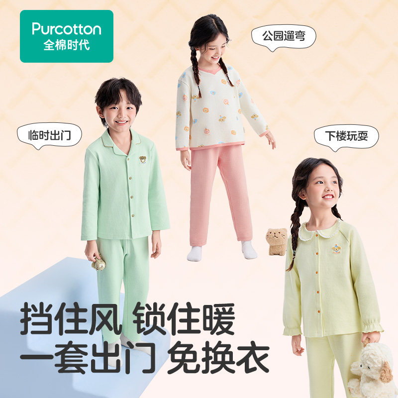 套装 儿童华夫格家居服男女孩宝宝纯棉睡衣裤 新款 全棉时代年秋季