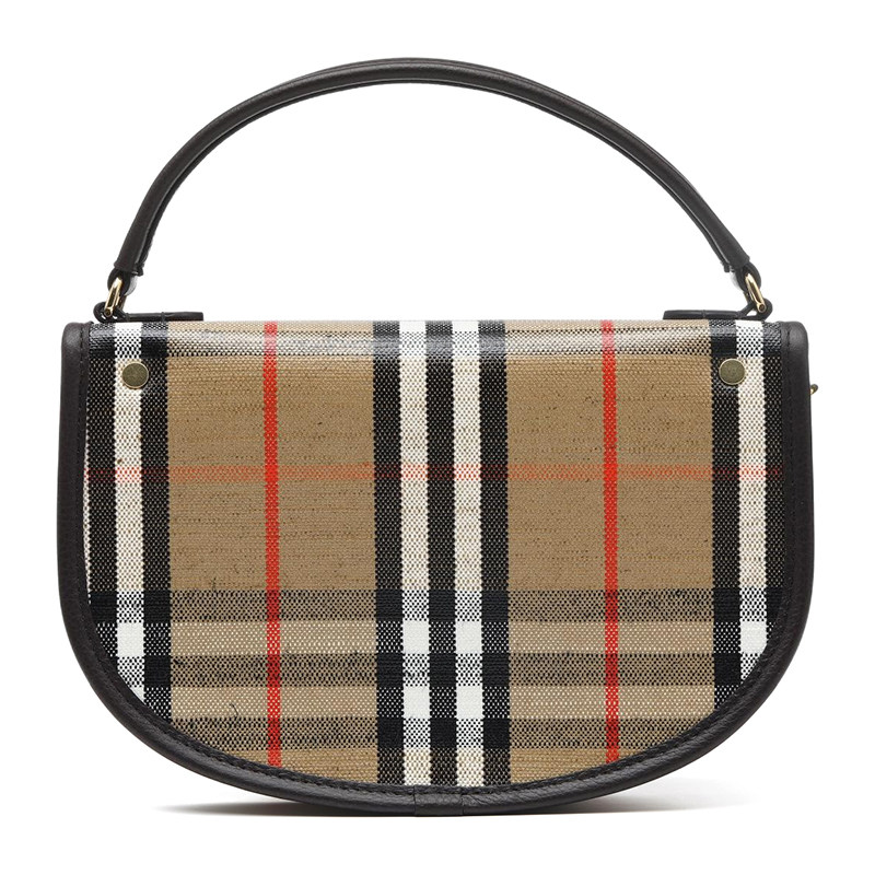博柏利女士皮革饰边格纹手提单肩斜挎包马鞍包 BURBERRY 自营