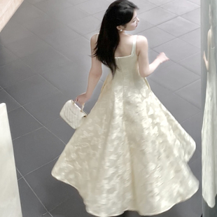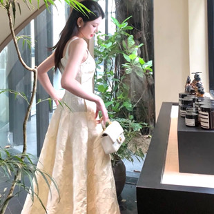 立体蝴蝶大摆连衣裙女 法式 杏色夏季 公主裙礼服小个子收腰甜美无袖