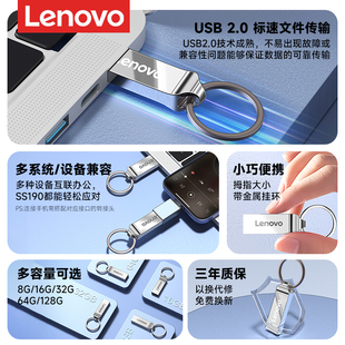 联想正品 金属u盘迷你大容量128g车载电脑手机两用学生办公优盘64g