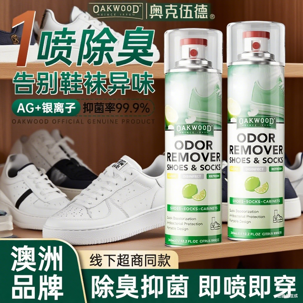 OAKWOOD鞋 柜除臭杀菌抑菌银离子去除异味专用 子除臭剂喷雾喷鞋