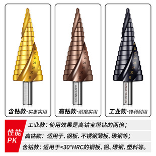 含钴宝塔型钻头高硬度铁板不锈钢304专用打孔钻头开孔扩孔器转头