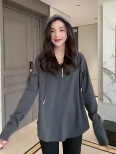 小众设计感中长款 新款 宽松百搭女上衣潮 女2026春季 加厚半拉链帽衫
