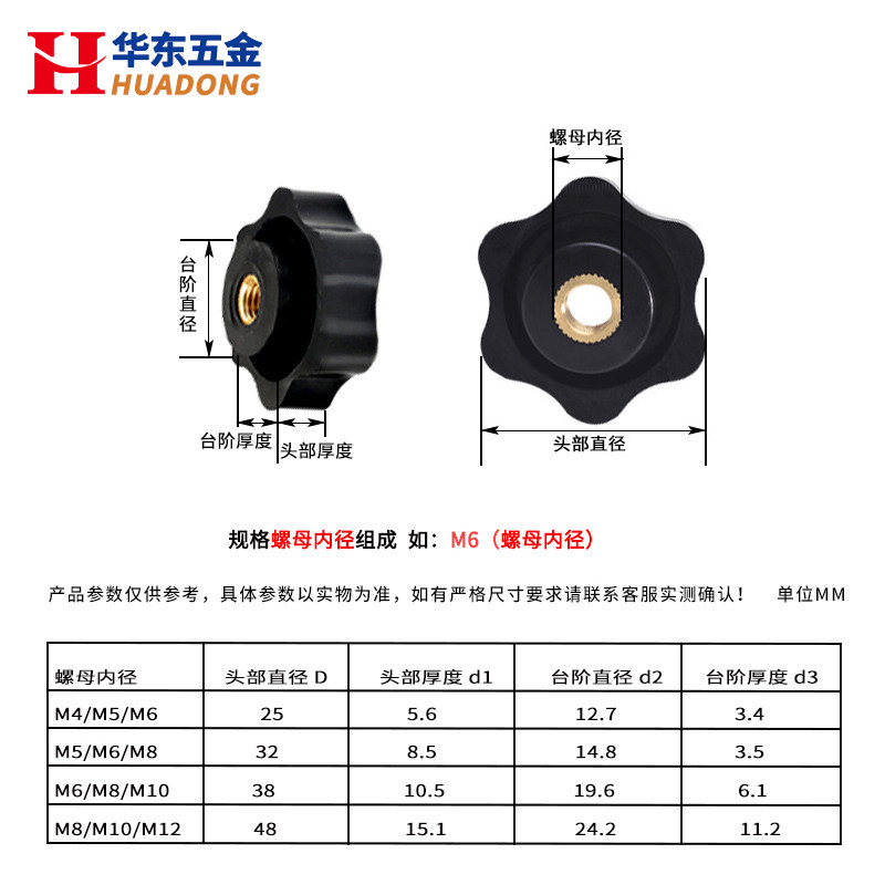 梅花手柄螺母六星胶木把手通孔盲孔塑料胶头手拧螺帽M4M5M6M10M12