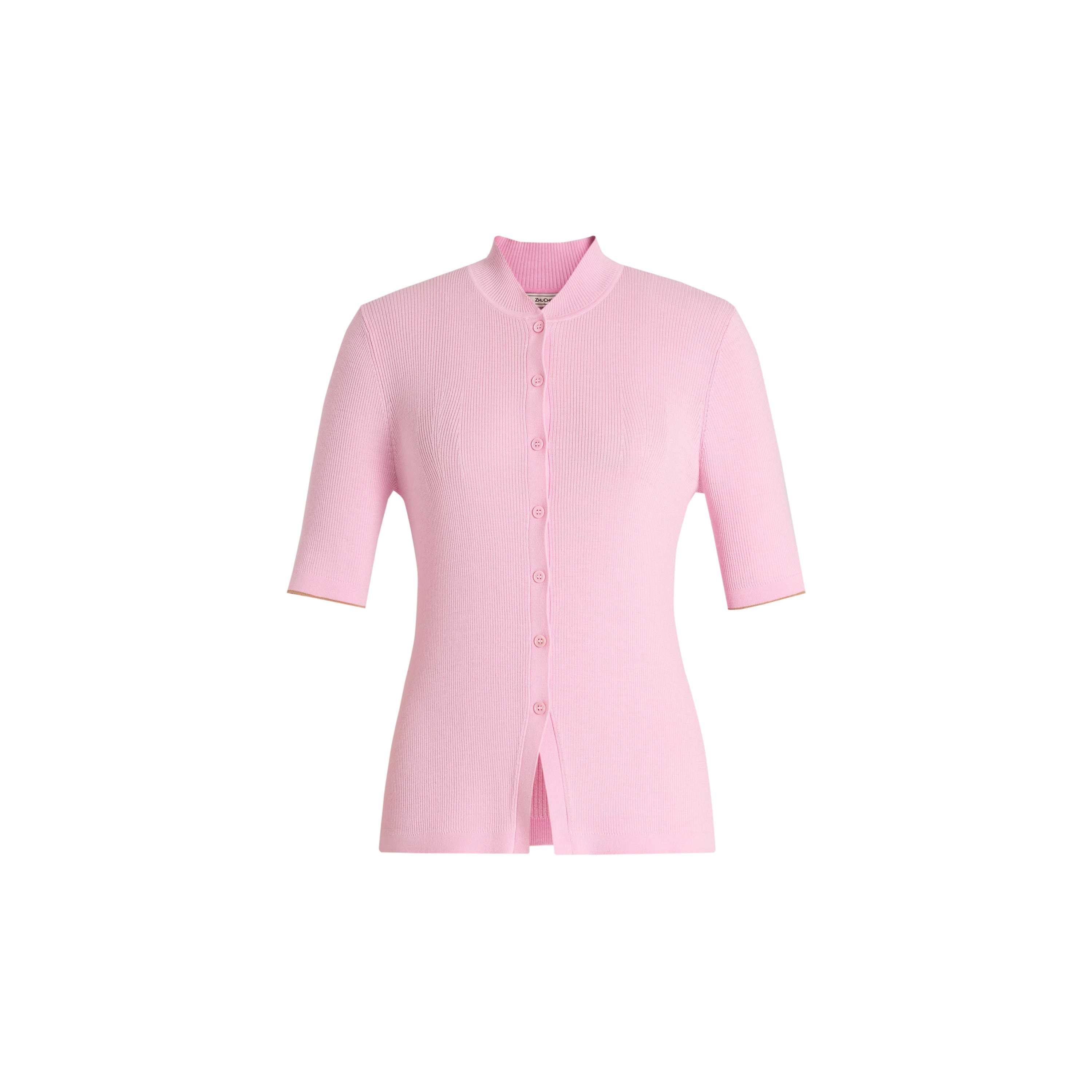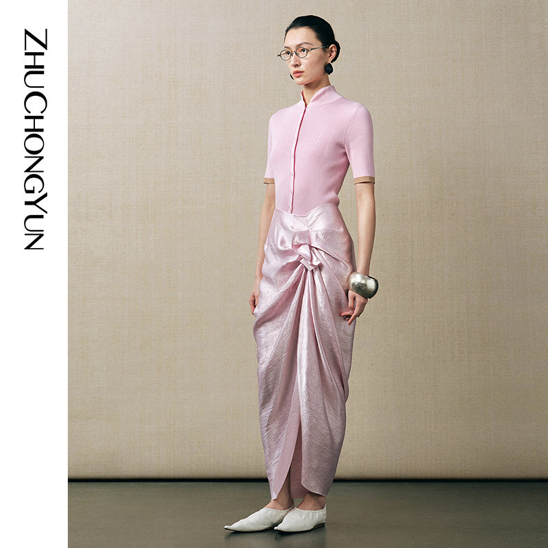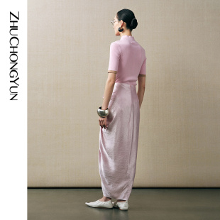 开衫 ZHUCHONGYUN2025秋新款 粉色轻柔简约立领重工开襟针织短袖