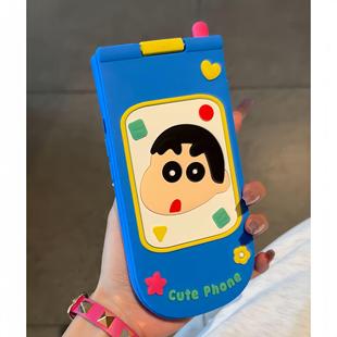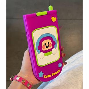 卡通硅胶翻盖镜子大哥大适用苹果iPhone16promax可爱17潮14pro手机壳新款 全包15promax创意趣味 13防摔12个性