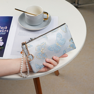 钱包女长款 中国风刺绣珍珠手提拉链卡包零钱夹手机收纳包 2025新款