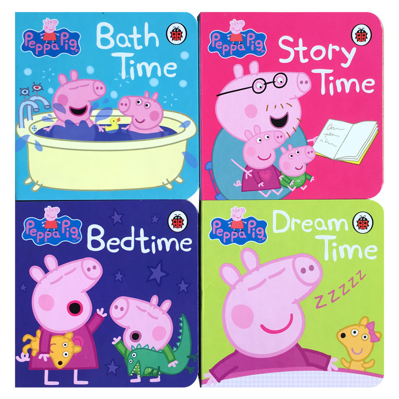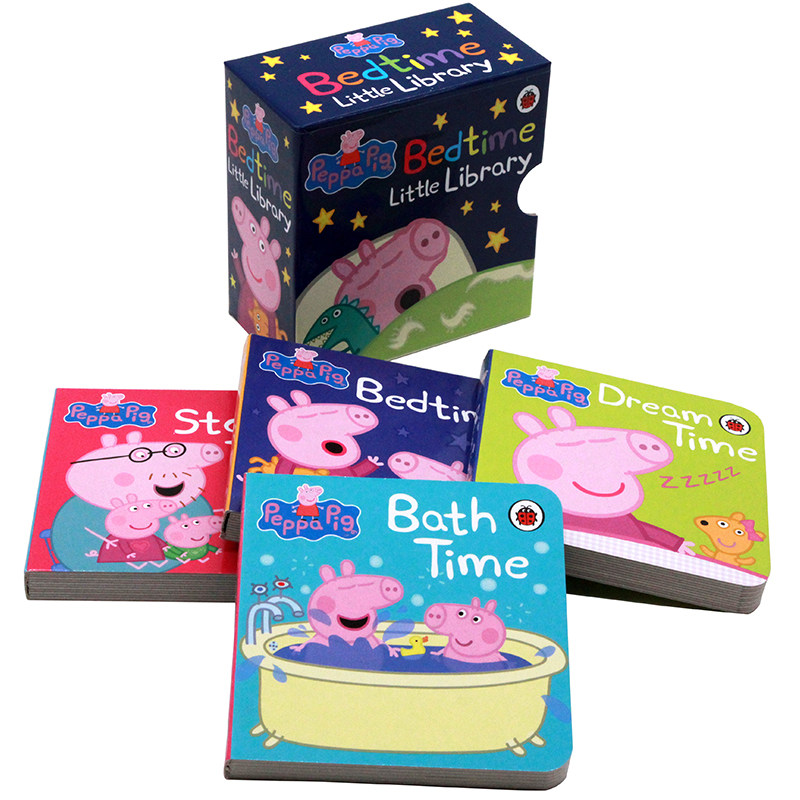 启蒙撕不烂纸板书幼儿早教 3岁 睡前故事4册盒装 Bedtime Little pig 小猪佩奇英文绘本 peppa 粉红猪小妹宝宝书0 Library 自营