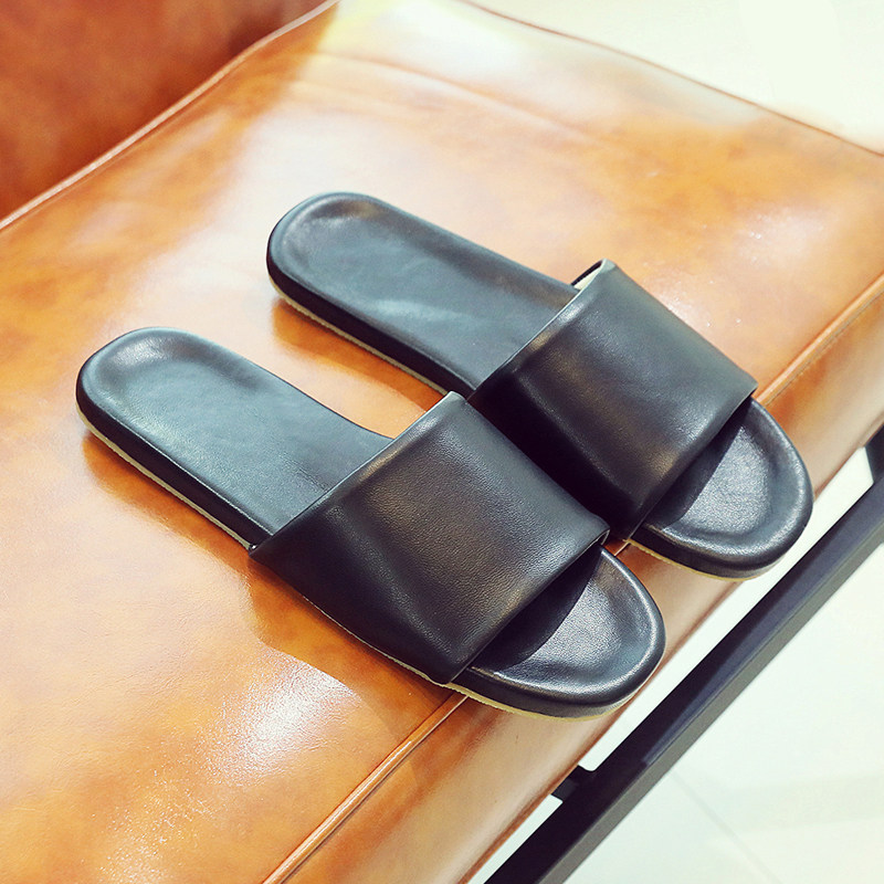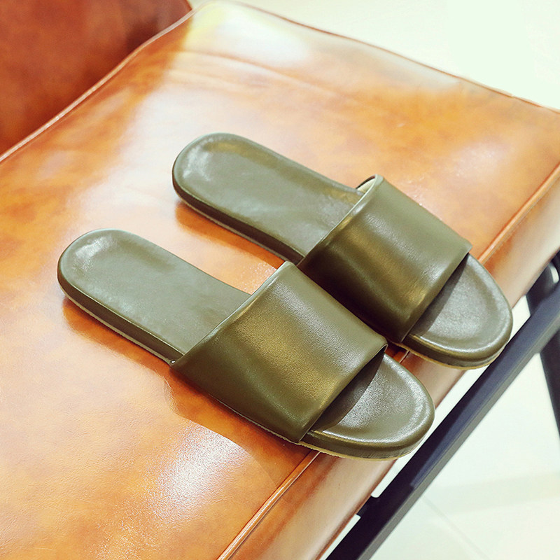 男女室内静音防滑居家用足弓软底凉拖鞋 夏季 高档羊皮家居拖鞋 日式
