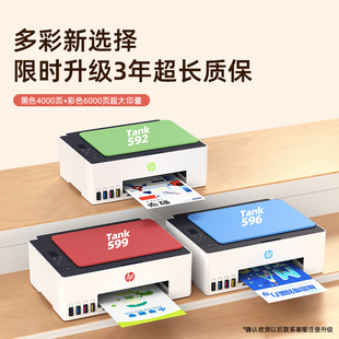 HP惠普tank592彩色连供家用小型打印机复印扫描一体机墨仓式 喷墨可手机无线连接家庭学生作业照片办公专用599