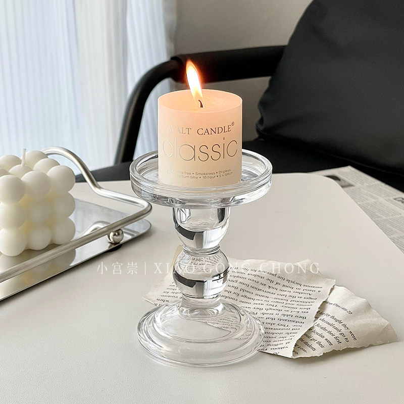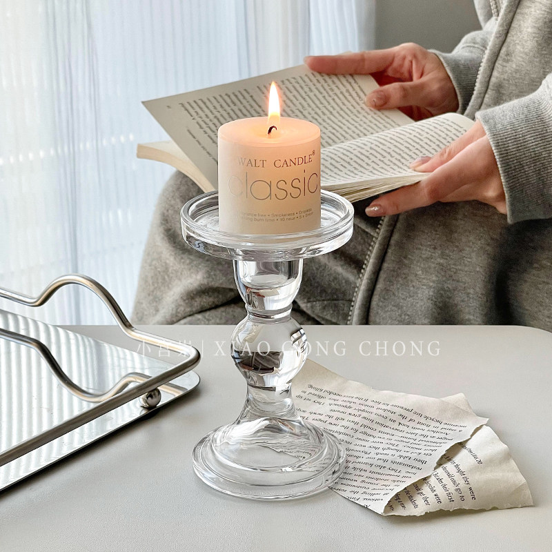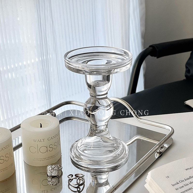 欧式 饰摆件ins拍照道具长蜡烛香薰蜡烛小烛台 复古玻璃烛台餐桌装
