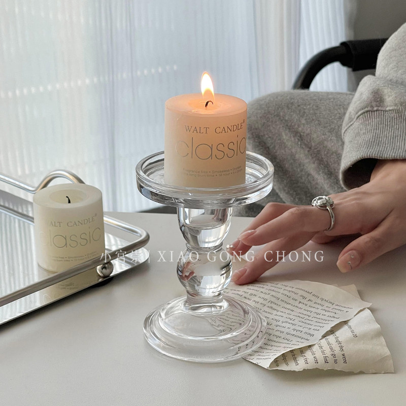 ins透明水晶罗马柱玻璃烛台复古烛光装 饰品拍照餐桌浪漫摆件道具