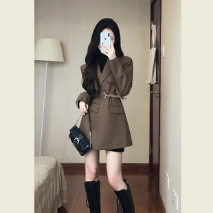 上衣长裙气质套装 百搭高腰显瘦短款 面料时尚 自制设计感赫本风西装