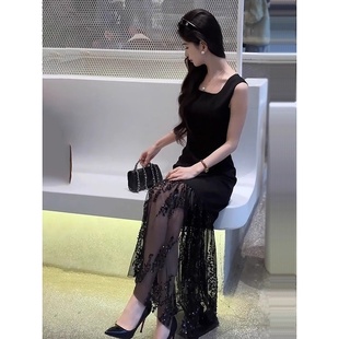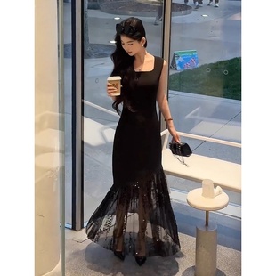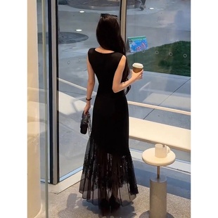 名媛气质轻奢长裙子潮 法式 蕾丝拼接吊带鱼尾连衣裙女2025夏季 新款