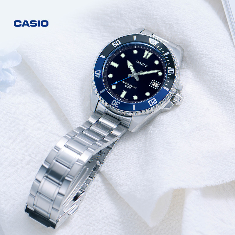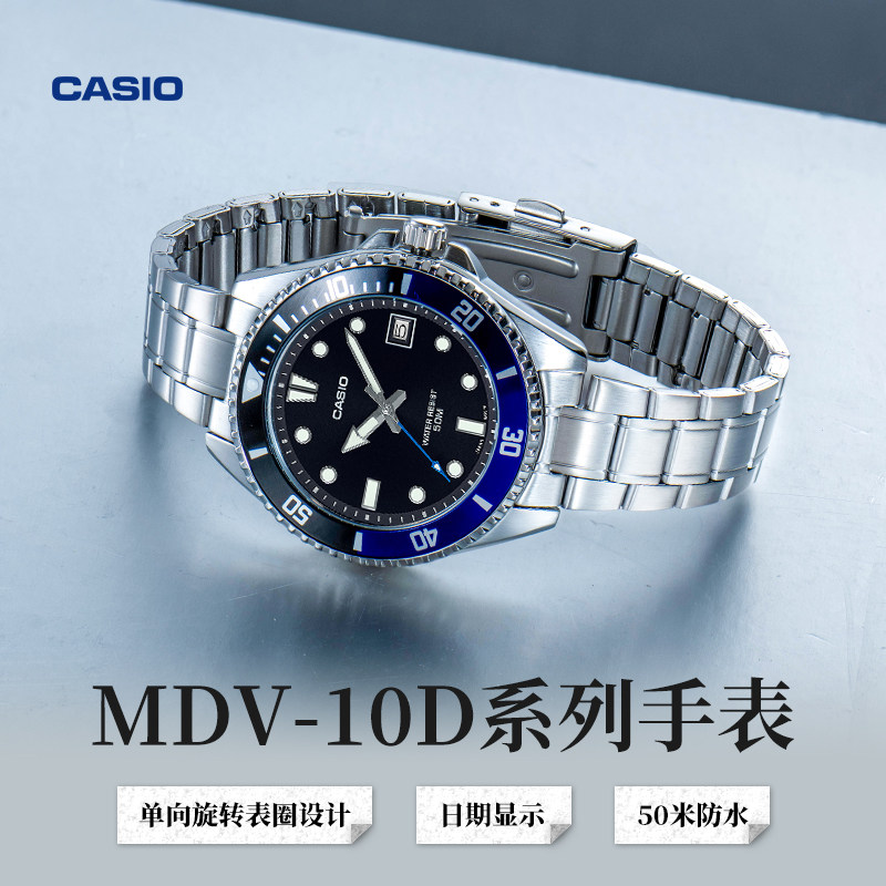 商务指针男士 10D复古时尚 卡西欧官方旗舰店MDV 电子手表 礼物
