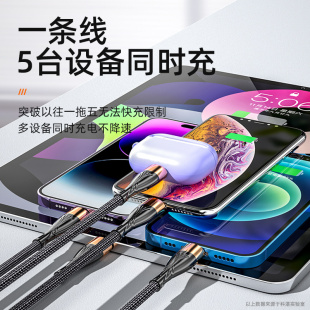 科湛适用一拖五数据线苹果iPhone华为小米oppo荣耀安卓通用手机充电器线加长一拖三5个Type C多口冲电线多头