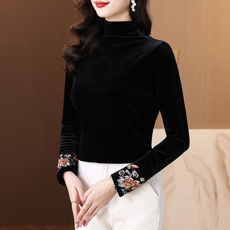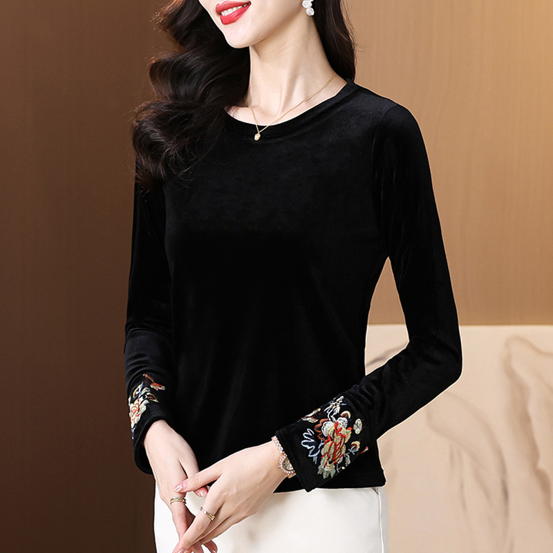 高级感丝绒刺绣小衫 2026年早秋新款 轻国风上衣内搭外穿女装 新中式