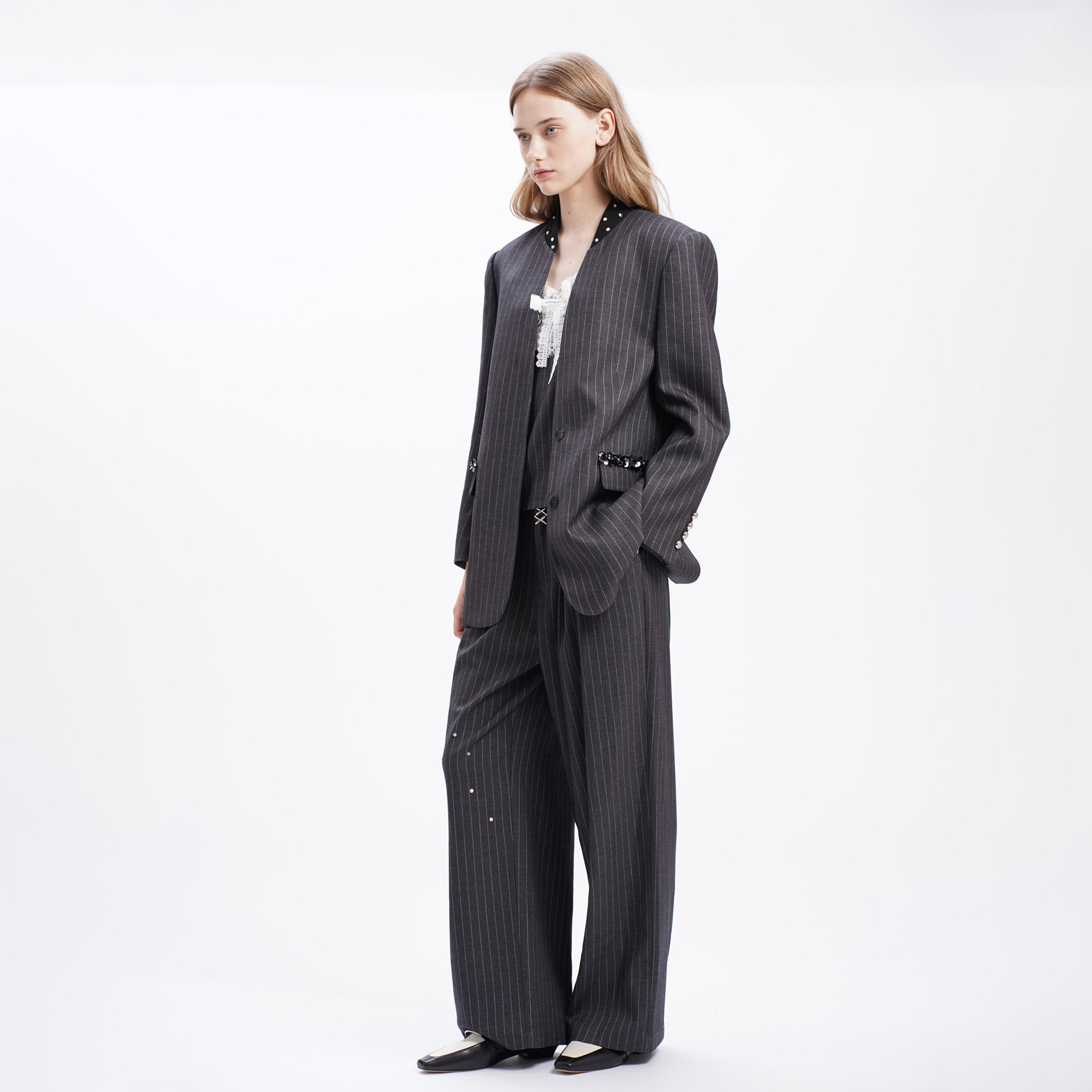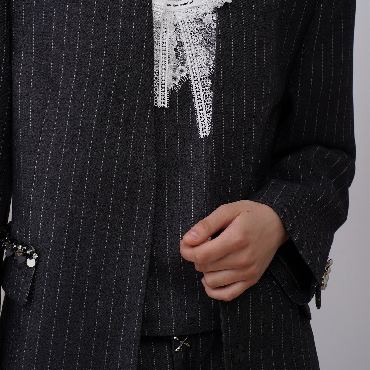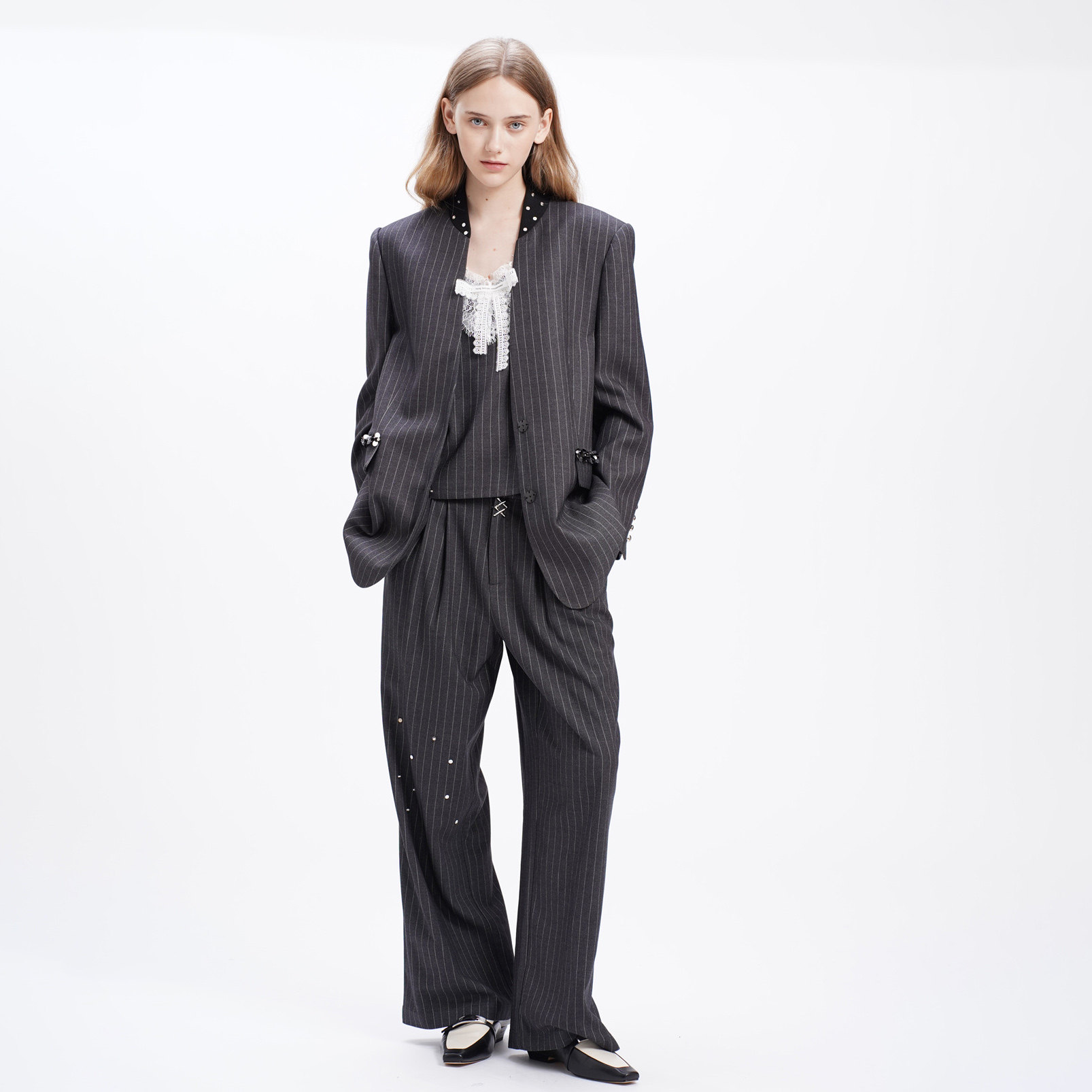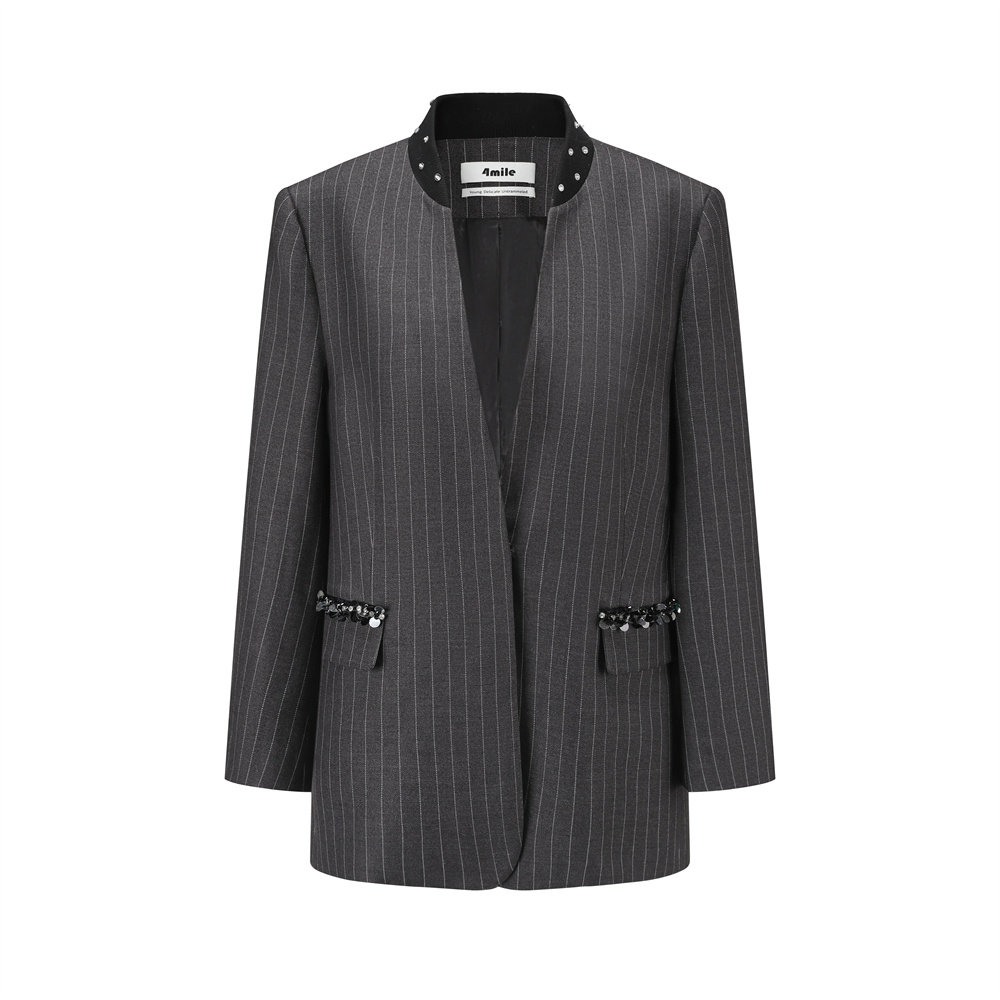灰条纹棒球领口西装 24AW新款 4MILE 外套 折