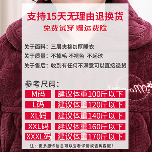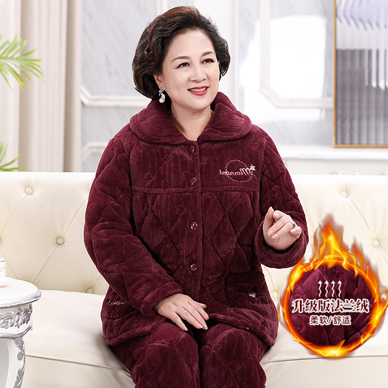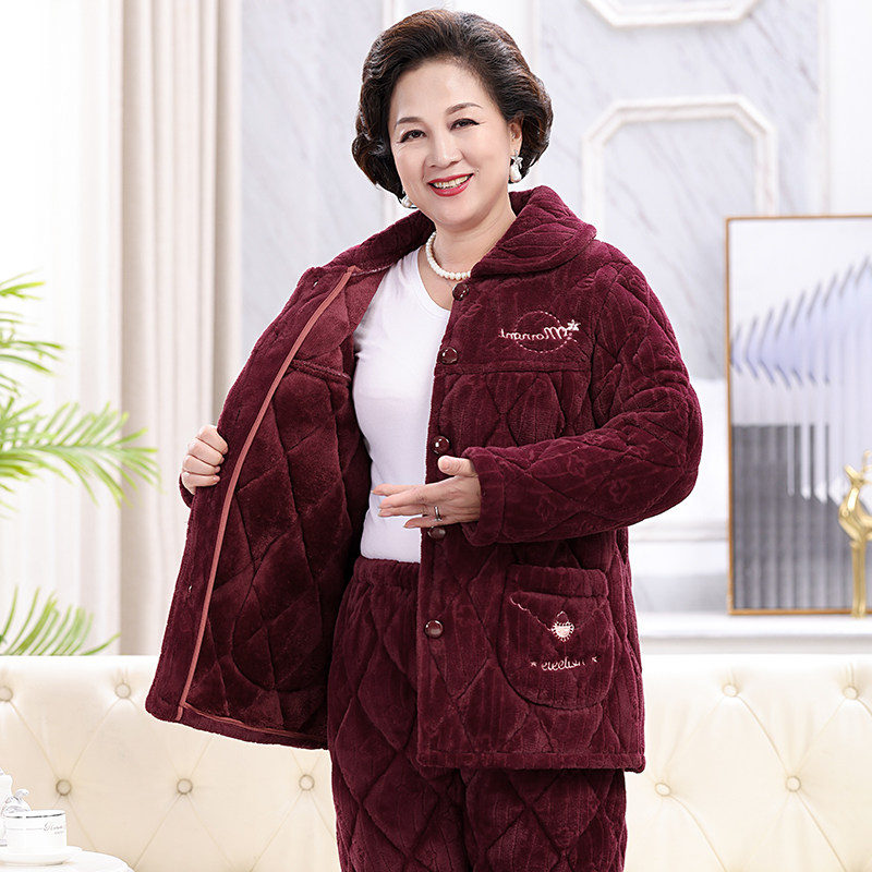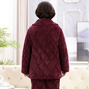 冬季 棉服夹棉中老年睡衣女牛奶绒老人保暖家居加厚加绒妈妈套装