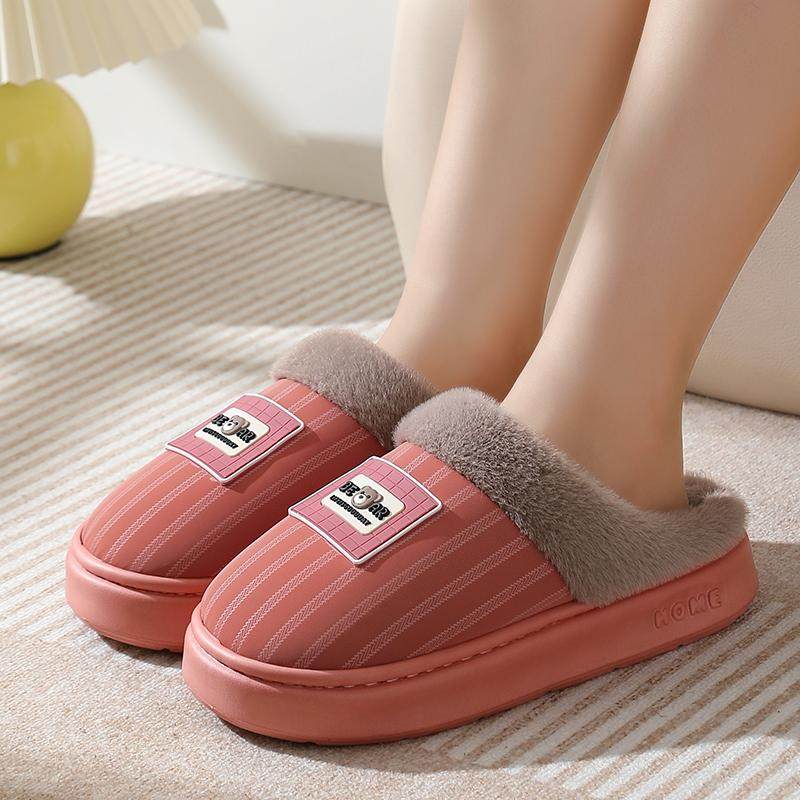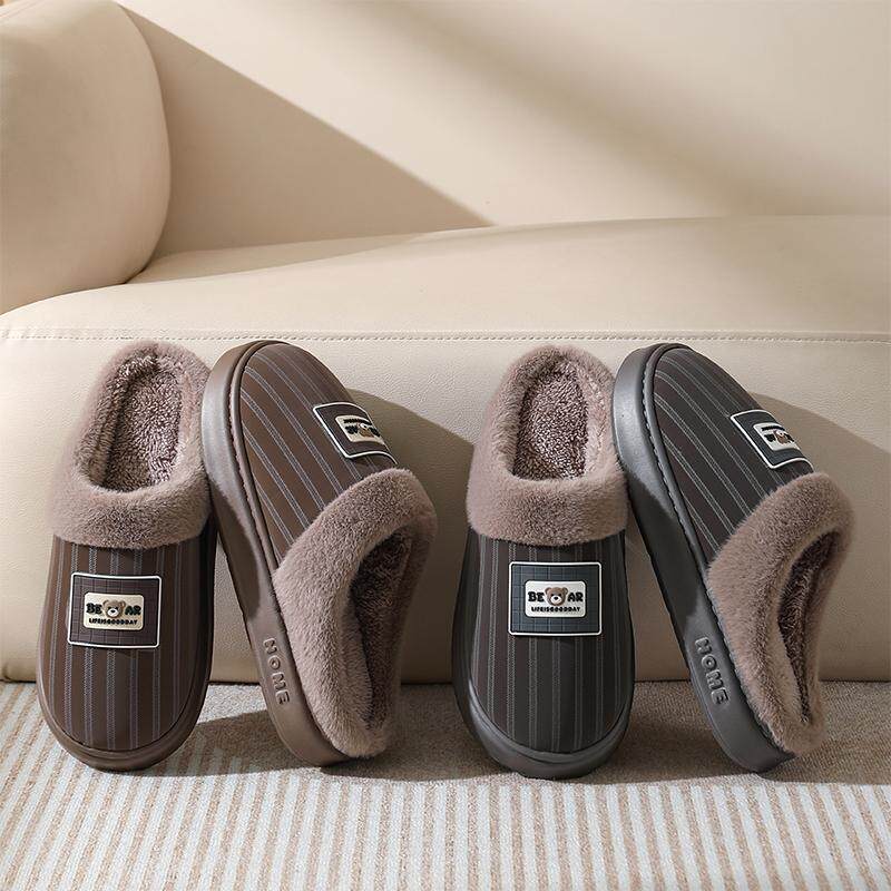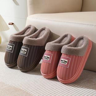 家居室内加厚保暖情侣PU皮防水棉拖鞋 棉拖鞋 底防滑耐磨冬季 EVA鞋
