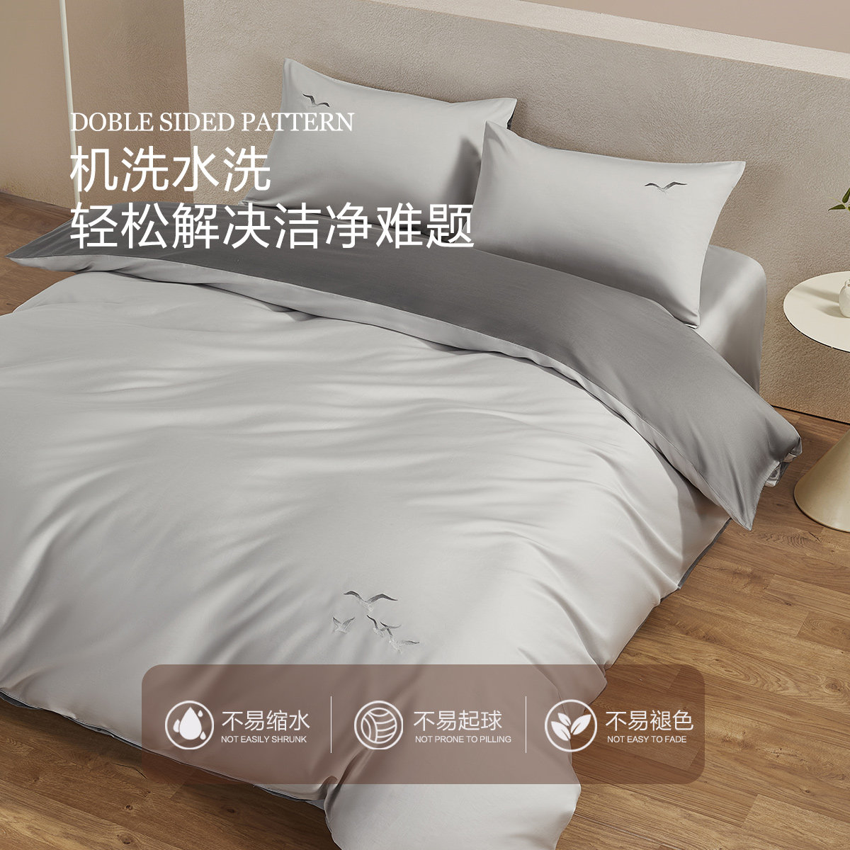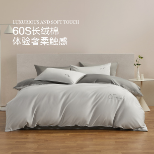 水星家纺60支长绒棉A类抑菌四件套贡缎套件轻奢被套床单家用床品