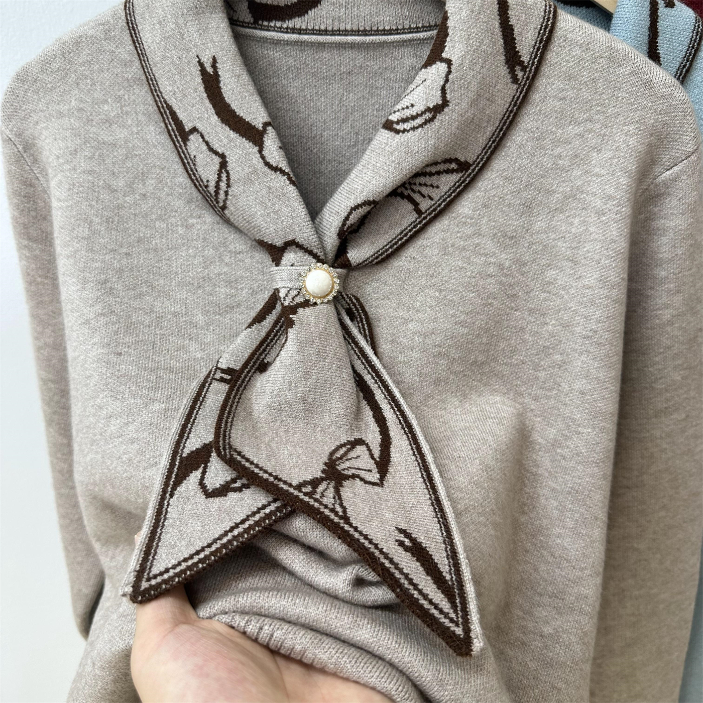 妈妈秋装 2025新款 春秋翻领打底衫 上衣中老年女装 薄毛衣 碎花针织衫