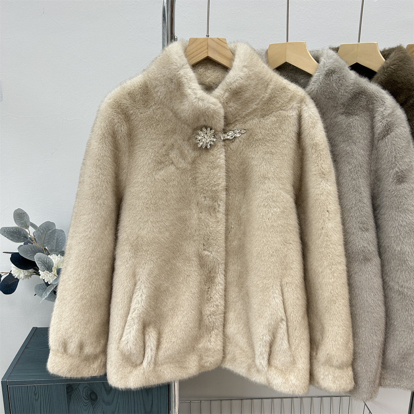 奶奶装 加厚加绒针织衫 半高领花朵仿貂毛毛衣中老年妈妈装 中年女装