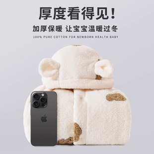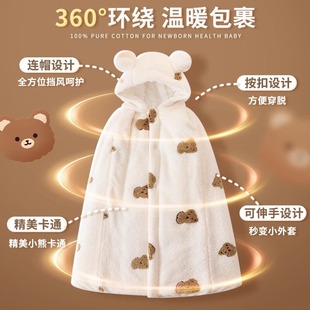 可伸手婴儿披风斗篷秋冬外出宝宝挡风防风外套儿童豆豆绒抱被冬季