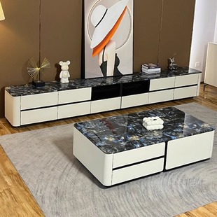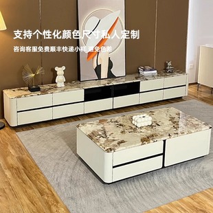 轻奢岩板电视机柜茶几组合小户型客厅家用现代简约收纳储物柜一体