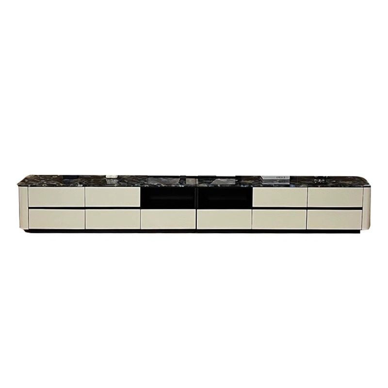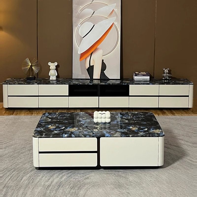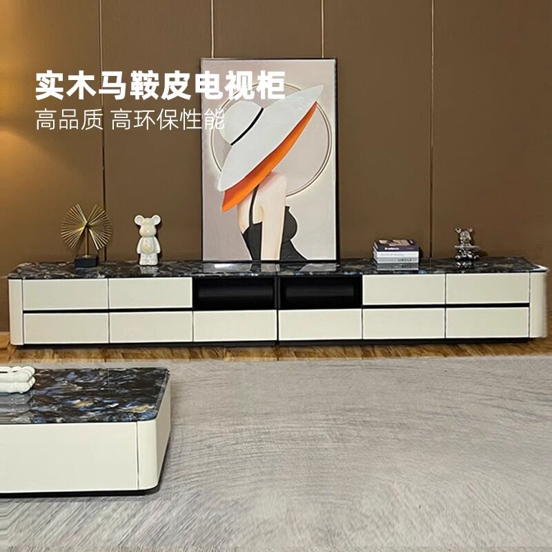 轻奢风高款 客厅家用现代简约烤漆高级白地柜 大理石电视柜茶几套装