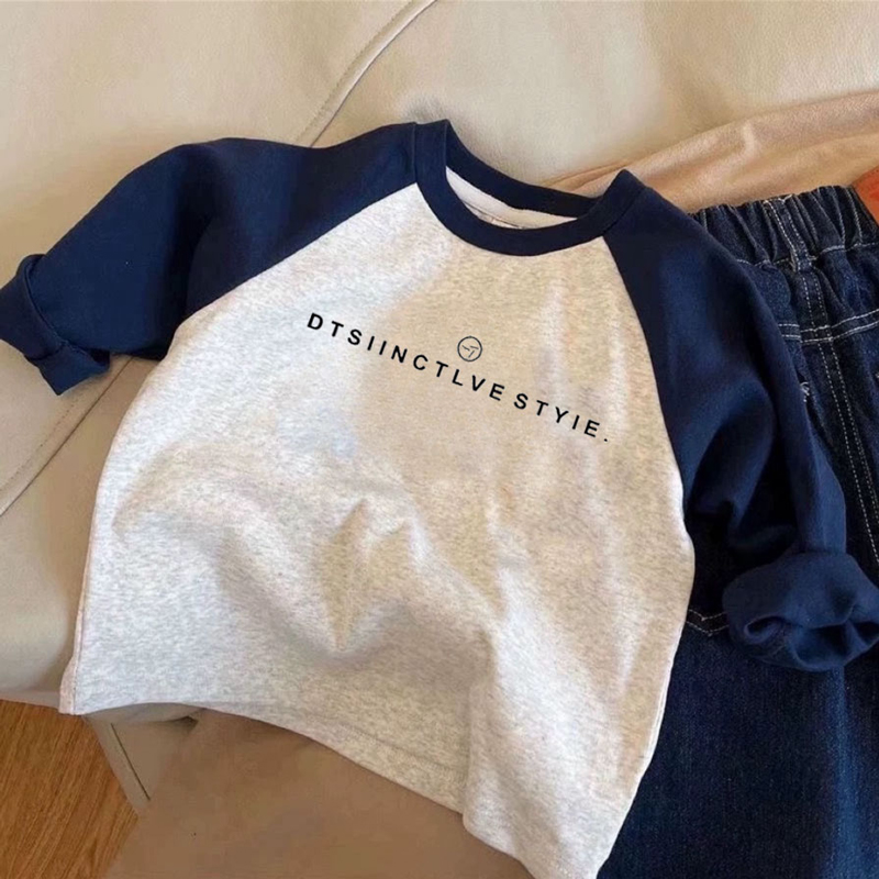 宝宝百搭打底衫 儿童纯棉长袖 t恤春秋男女童拼色字母休闲上衣秋季