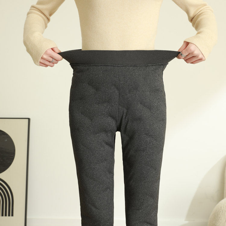 男女冬高腰弹力加绒加厚保暖白鸭绒内胆羽绒保暖裤 新款 内穿羽绒裤